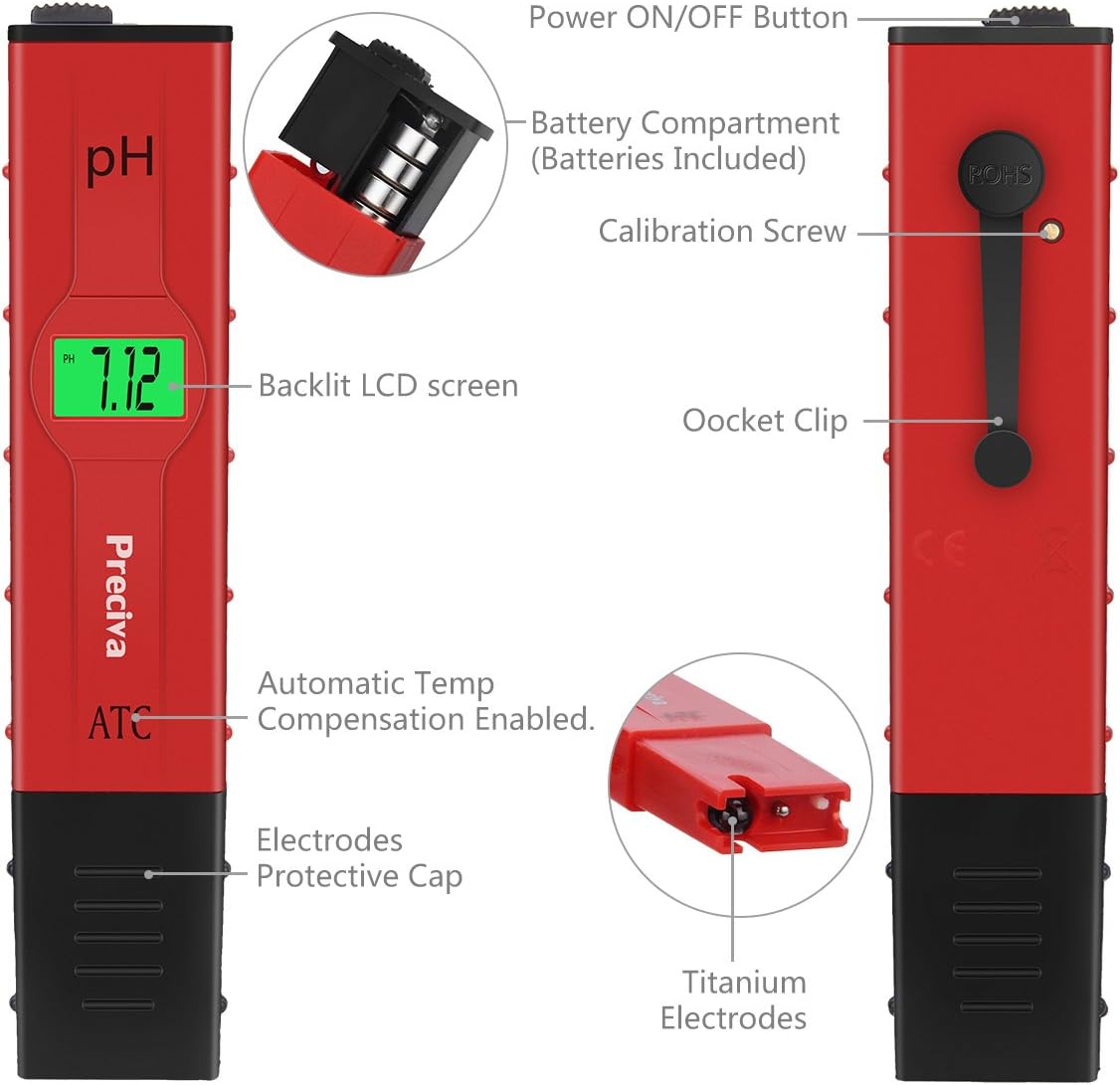 Automatic Calibration】Every Preciva PH tester is calibrated before it was sent to our customers, no need to calibrate again. You can calibrate it every two weeks if it is used frequently, and once a month if not frequently.