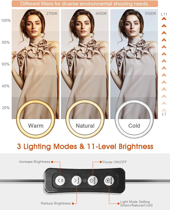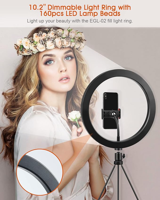 The Miracase 10-Inch RGB Ring Light Kit is a complete content creation lighting setup that includes a dimmable LED ring light, adjustable tripod stand, phone holder, and Bluetooth remote shutter — everything you need to shoot professional-looking videos, photos, and live streams right out of the box. The 10-inch ring delivers even, shadow-free illumination that flatters your face for makeup tutorials, TikTok videos, YouTube content, Zoom calls, product photography, and more.