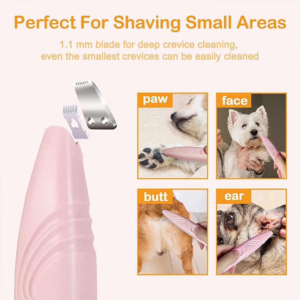 The Pet Shaver Dog Hair Trimmer is a compact, cordless grooming tool designed for precision trimming on dogs and cats. Its small, pen-like form factor makes it ideal for detail work in sensitive areas like paws, face, ears, eyes, and sanitary zones where larger clippers can’t reach or might frighten your pet. The low-noise motor runs quietly to keep anxious animals calm during grooming sessions.