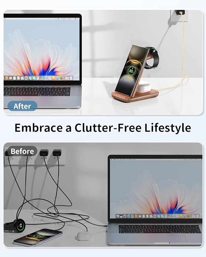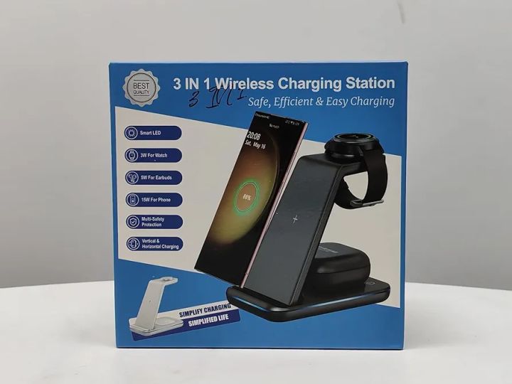 ∙ 3-in-1: charges phone, smartwatch, and wireless earbuds simultaneously