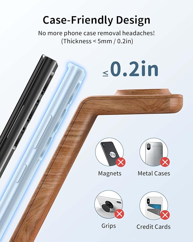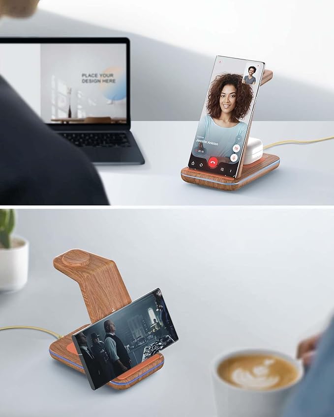 The upright stand supports both vertical and horizontal phone placement, making it easy to continue watching videos, taking calls, or checking notifications while your phone charges. A smart LED indicator shows charging status, and built-in multi-safety protection ensures safe, worry-free charging at all times. Compatible with all Qi-enabled devices including iPhone, Samsung Galaxy, Apple Watch, AirPods, Galaxy Watch, and Galaxy Buds.