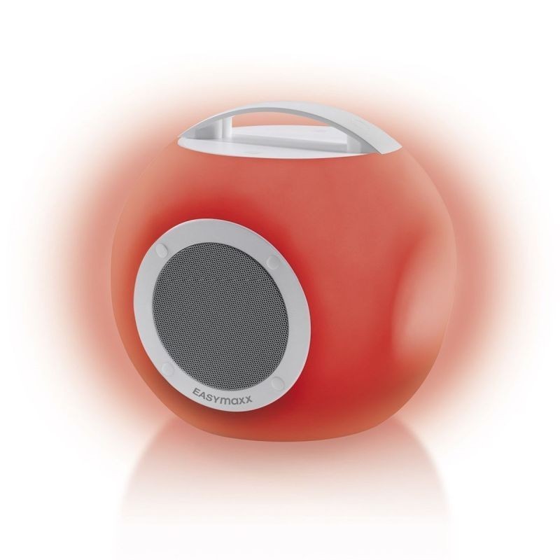 The EASYmaxx Colorcube is a German-designed portable Bluetooth speaker that combines quality sound with a stunning LED light show. This eye-catching spherical speaker lights up in 7 different colors with multiple lighting modes — choose from smooth color transitions, gradient effects, or pulsating colors that beat in sync with your music. You can also lock in your favorite color and dim it across 5 brightness levels. Everything is controlled effortlessly via the included IR remote control.