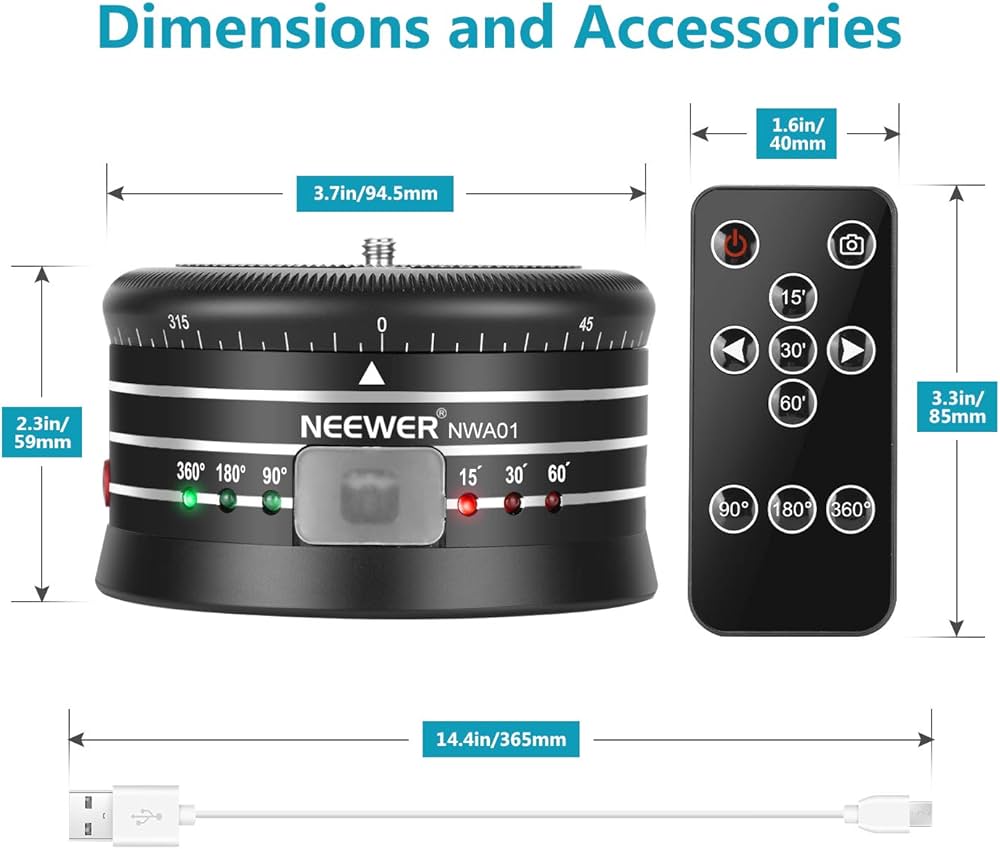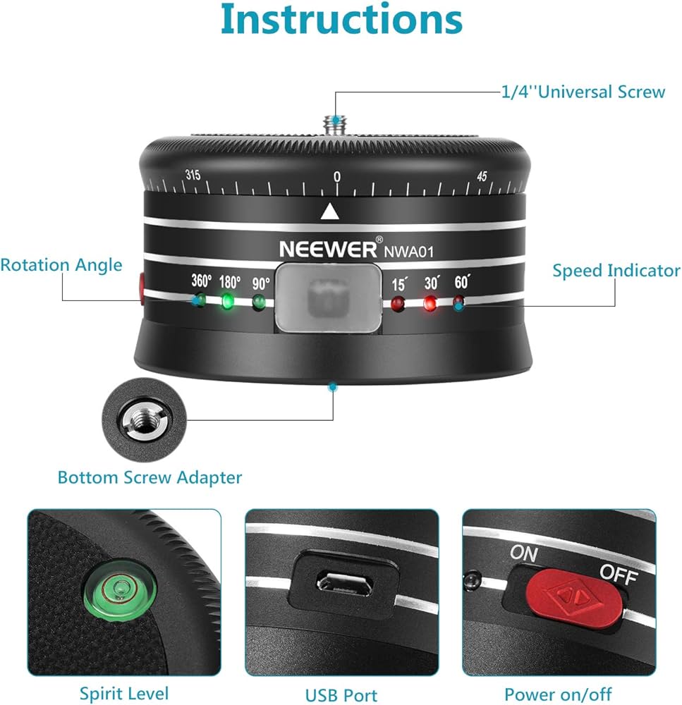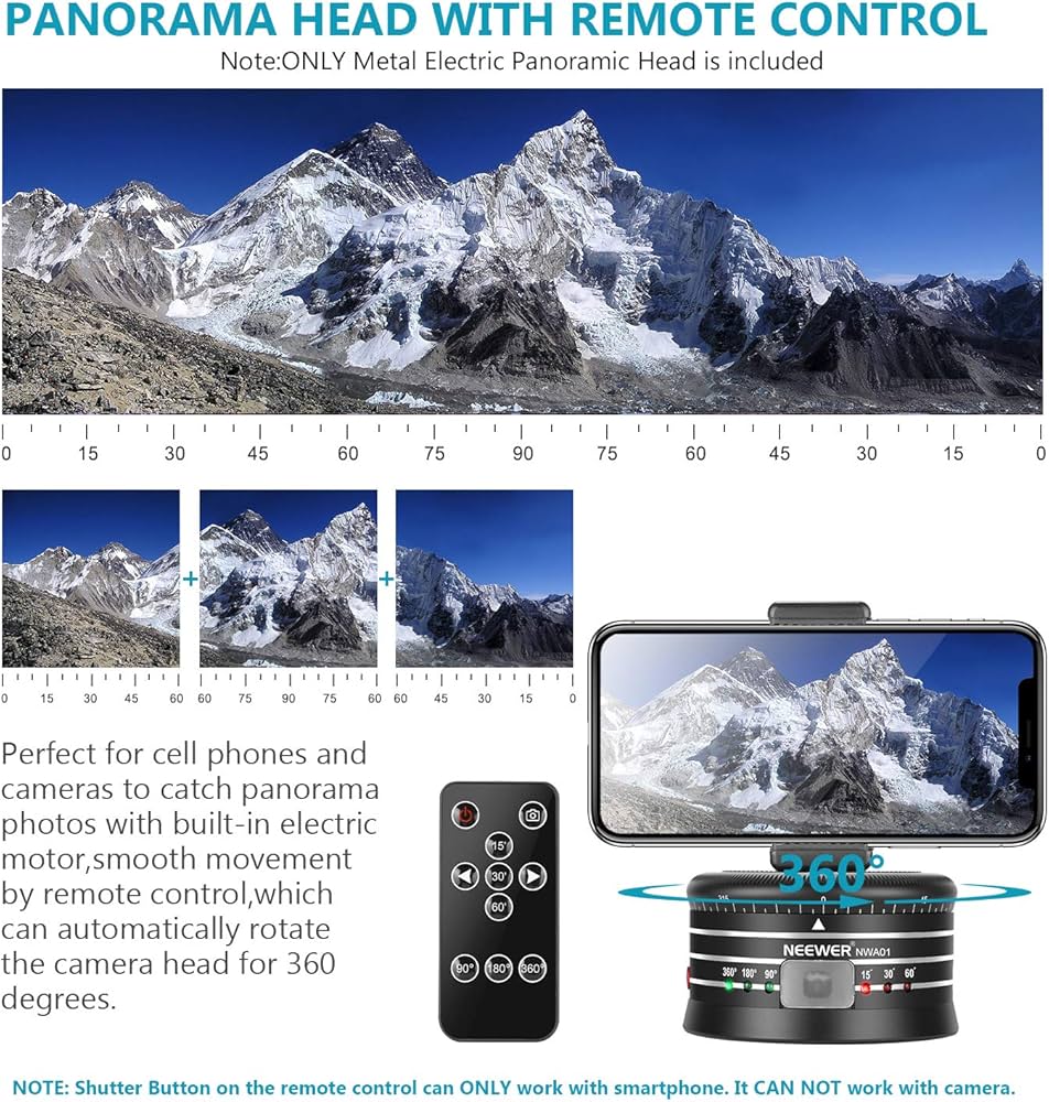 Neewer Electric Panoramic Tripod Head for Time Lapse Shooting with Variable Speed and Direction, Built-in Rechargeable Battery and Remote Control for Smartphone DSLR Camera GoPro(Adapter Not Included)