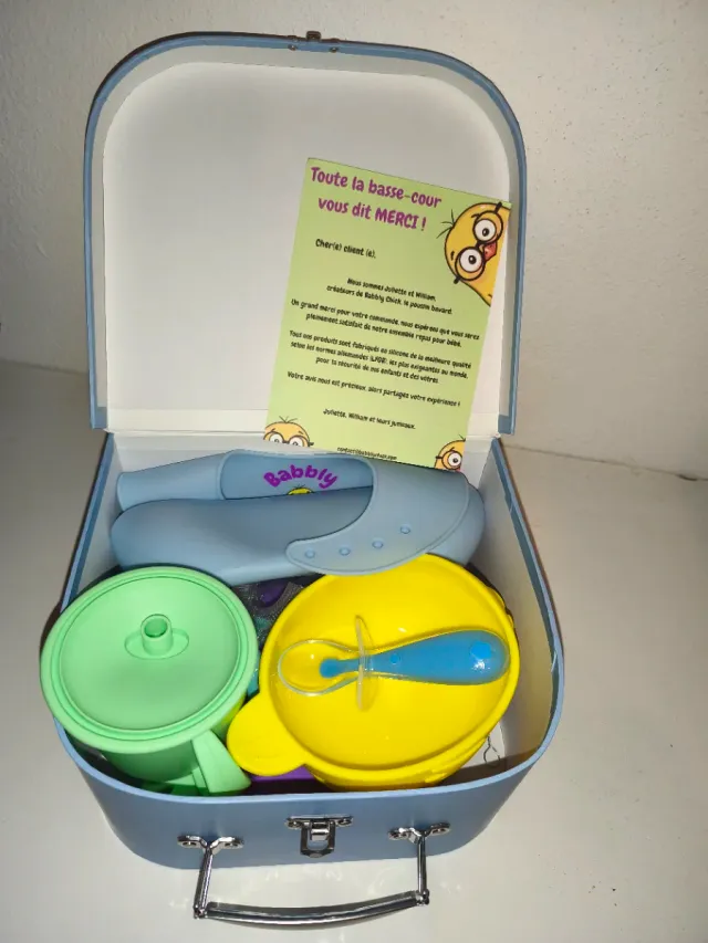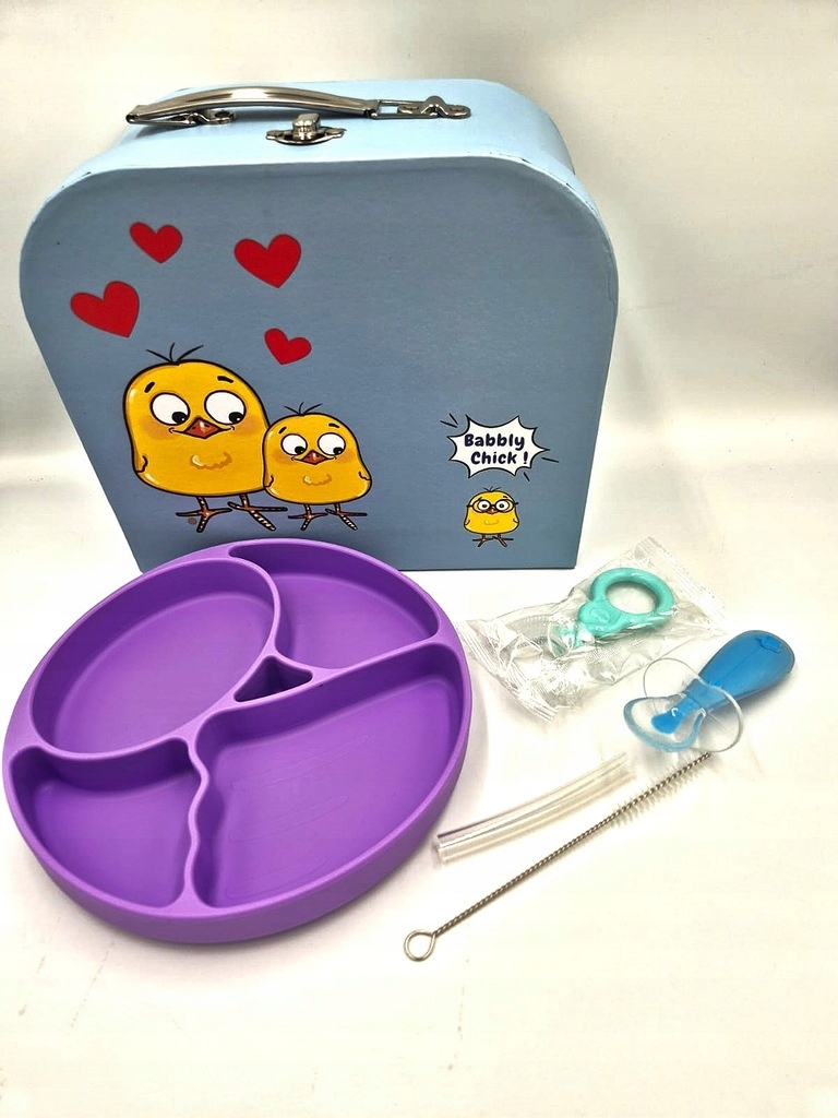 طقم وجبات الطفل من Babby Chick هو مجموعة أدوات تغذية كاملة من 8 قطع مصنوعة من السيليكون البلاتيني، مصمّمة للرضّع والأطفال الصغار الذين يبدأون رحلتهم مع الأطعمة الصلبة. كل ما يحتاجه طفلك لوقت الوجبات يأتي معبّأً داخل حقيبة سفر صغيرة ساحرة باللون الوردي مزيّنة بشخصيات كتاكيت وقلوب — مما يجعلها مثالية للسفر وعطلات نهاية الأسبوع والحضانة والخروج لتناول الطعام.تتضمن المجموعة طبقاً وصحناً بقاعدة شفط تلتصق بالطاولات والكراسي العالية لمنع الانسكاب، ومريلة سيليكون بجيب لالتقاط الطعام المتساقط، وملعقة تعلّم ناعمة بحجم مناسب لأيدي الصغار، وكوب بمقبض وقشّة للشرب المستقل، وفرشاة صغيرة لتنظيف القشّة، وحتى فرشاة أسنان للأطفال لتعويدهم على نظافة الفم مبكراً. كل قطعة مصنوعة من سيليكون بلاتيني غذائي فاخر — خالٍ تماماً من BPA، آمن، متين، سهل التنظيف، وقابل للغسل في الغسالة.