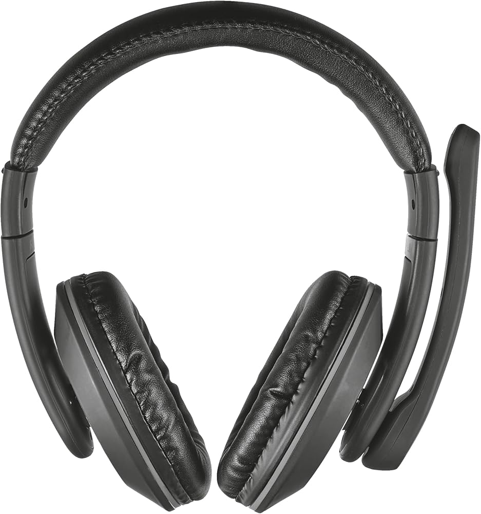 Trust Reno PC Headset with Microphone, Adjustable Headband, Flexible Microphone, Inline Control, Wired Over-ear Headphones for Computer, Laptop, Teams, Skype, Zoom - Black | Mazad