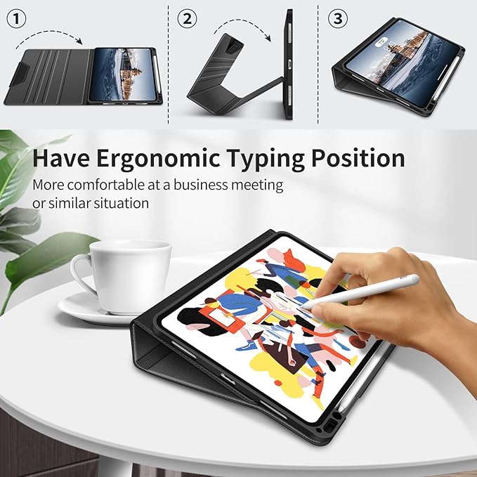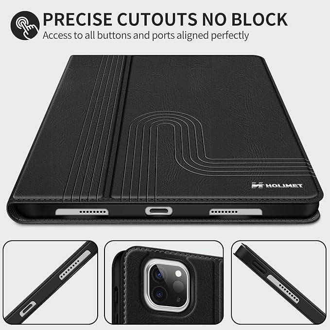 The H HOLIMET Table Case in Black is a premium folio-style protective case designed for the iPad Pro 11-inch across all four generations (2018–2022). What makes this case stand out is its practical document pocket built into the front cover — perfect for slipping in notes, business cards, boarding passes, or cash — turning your iPad case into a mini portfolio. The built-in Apple Pencil holder keeps your stylus secure and supports wireless charging for the 2nd generation Pencil without removing the case.