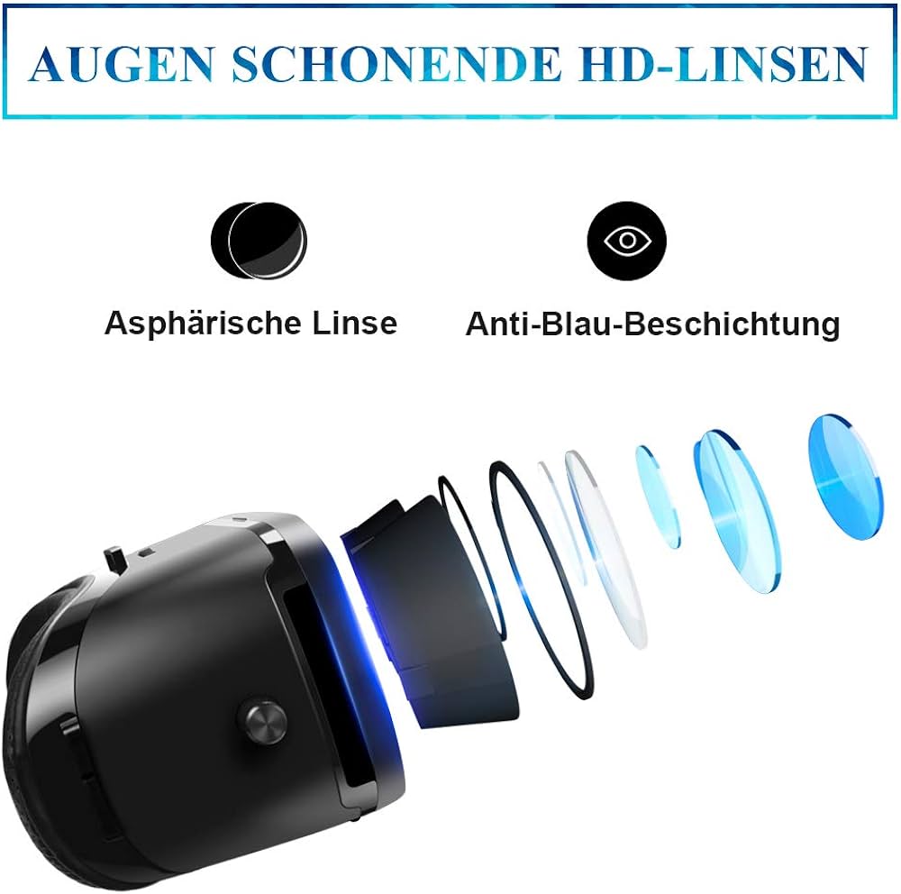 Eye-protecting HD lenses: the virtual reality glasses with anti-blue coating apply the aspherical optic plastic lenses that bring a huge screen for unparalleled clarity. No colour scattering and distortion