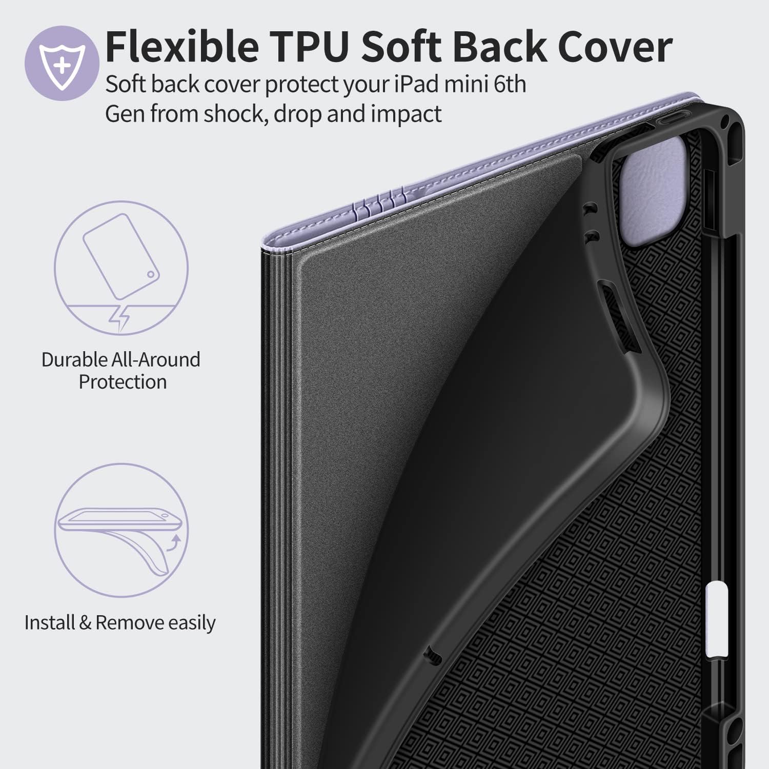 ∙ Soft TPU shockproof back cover — easy install and removal