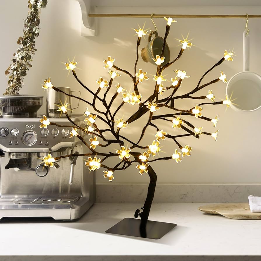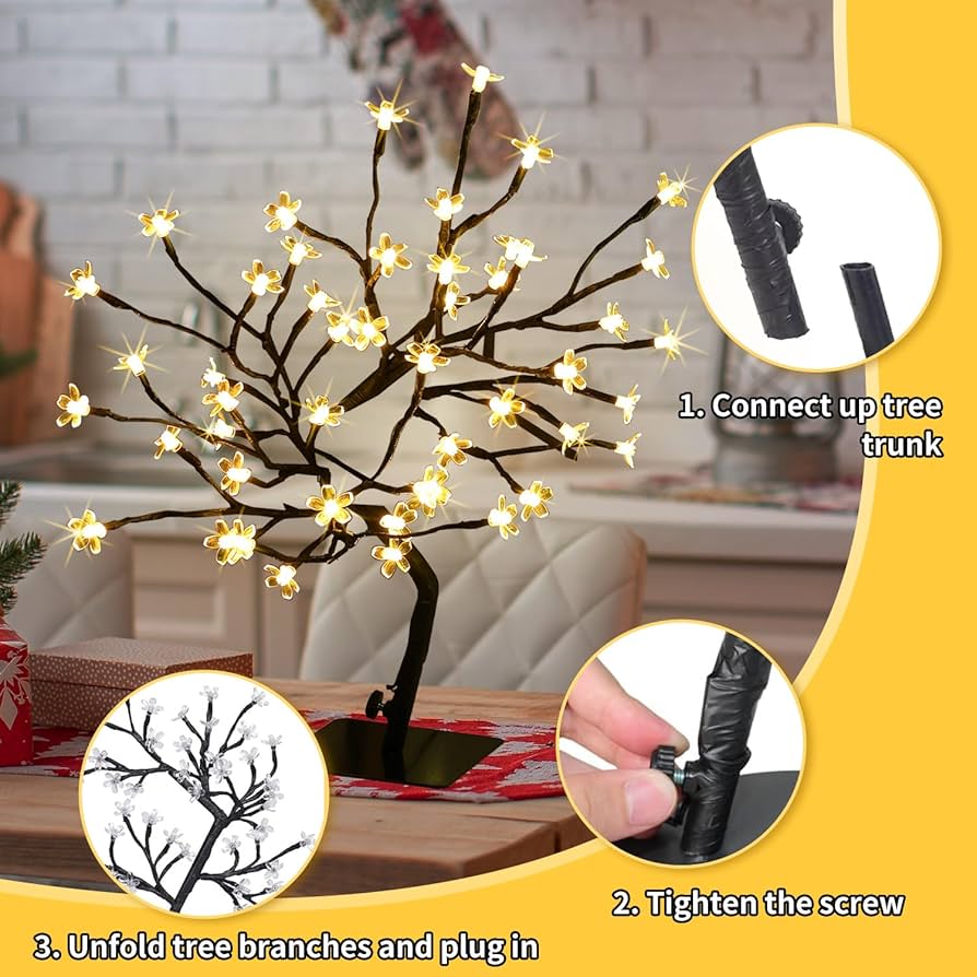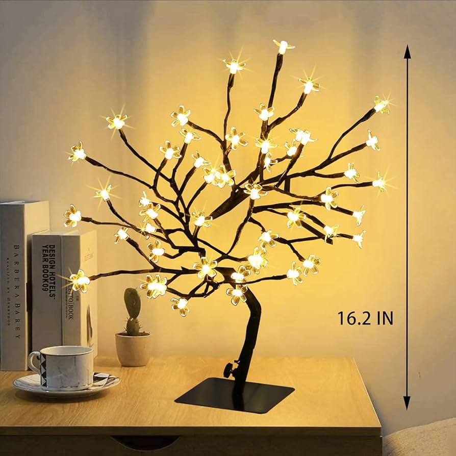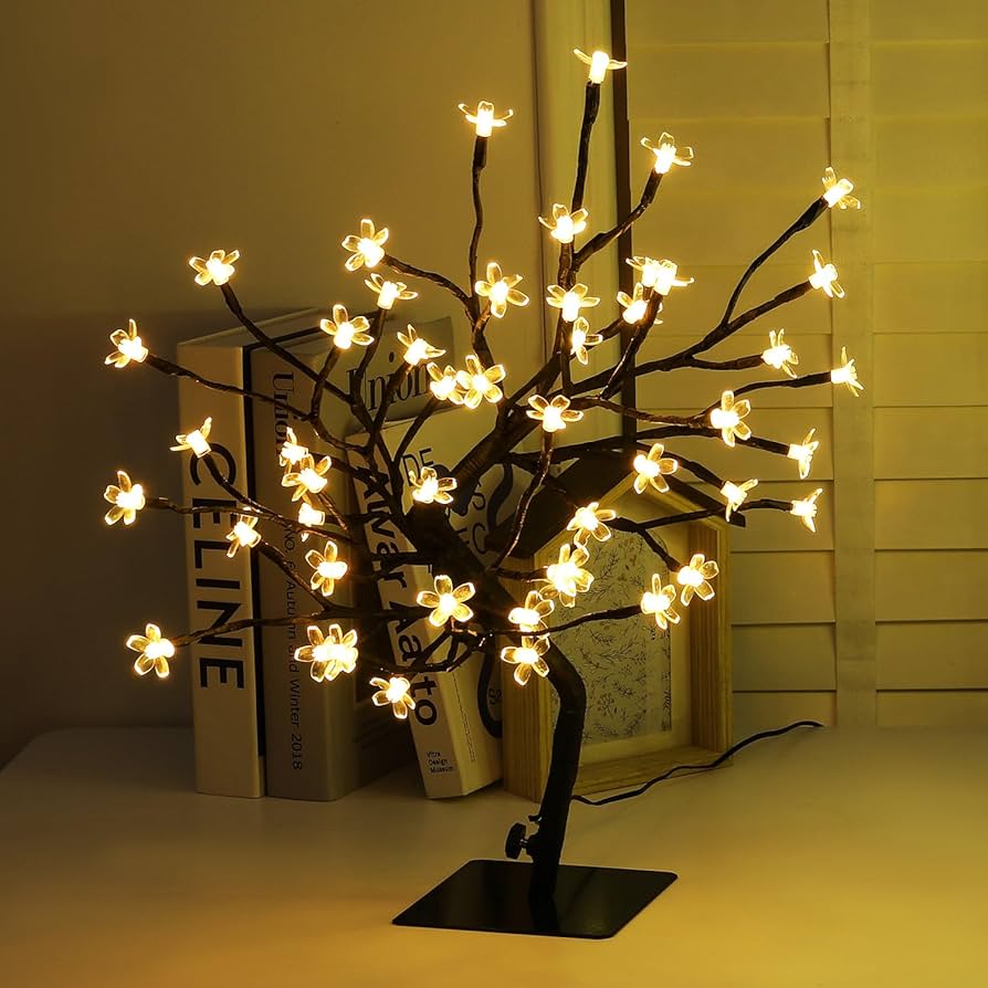 LED Cherry Blossom Bonsai Stylt Tree Lamp 45cm With 72 LED Warm White Fairy Lights, Stable Square Metal Base, Christmas xmas Tree Lights