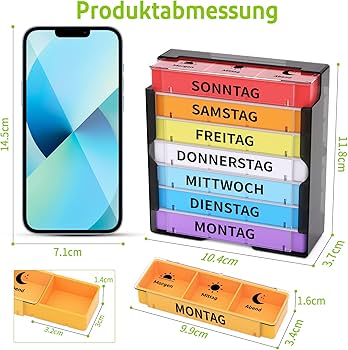 Pill Box 7 Days 3 Compartments There are 7 pill boxes, each with 3 compartments with labels for morning, noon and evening. Make your pill intake organised.