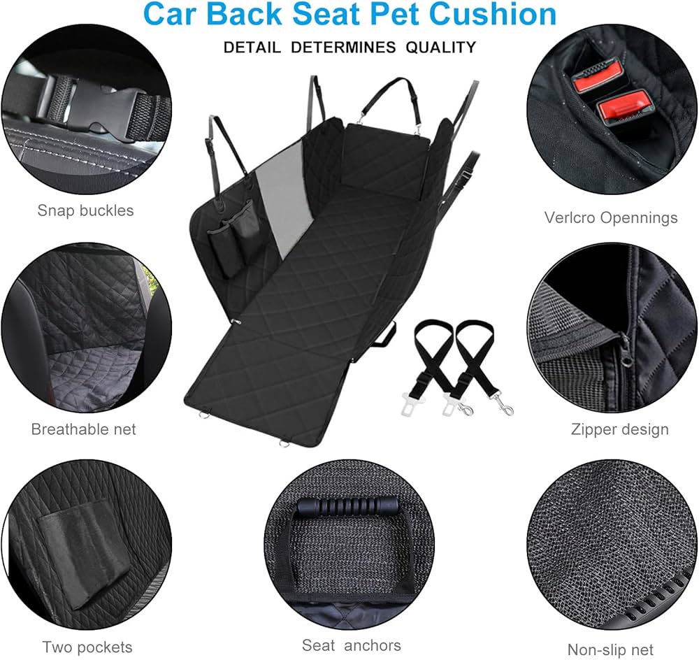 ⭐DURABLE & EASY CLEAN⭐ Made from heavy-duty 600 denier fabric with water-resistant coating, lining & backing and absorbent thicker PP cotton, this dog back seat cover is comfortable & durable for added protection against liquid and spills. Easy clean with a damp cloth, vacuum or raise it with a shower