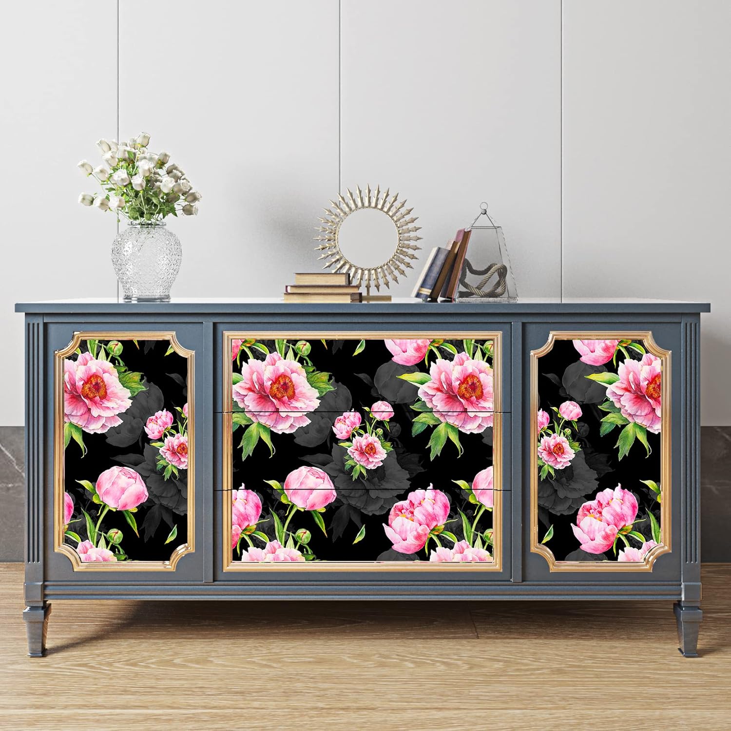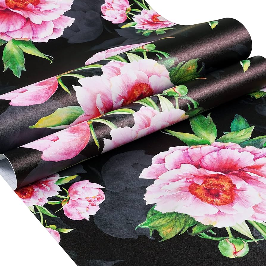【Dark floral wallpaper】🏈Peel and Stick: No extra glue needed! Prepasted wallpaper has adhesive on the back it becomes sticky, just peel and stick on walls or cabinets with patience, the wallpaper is peelable if not needed.
