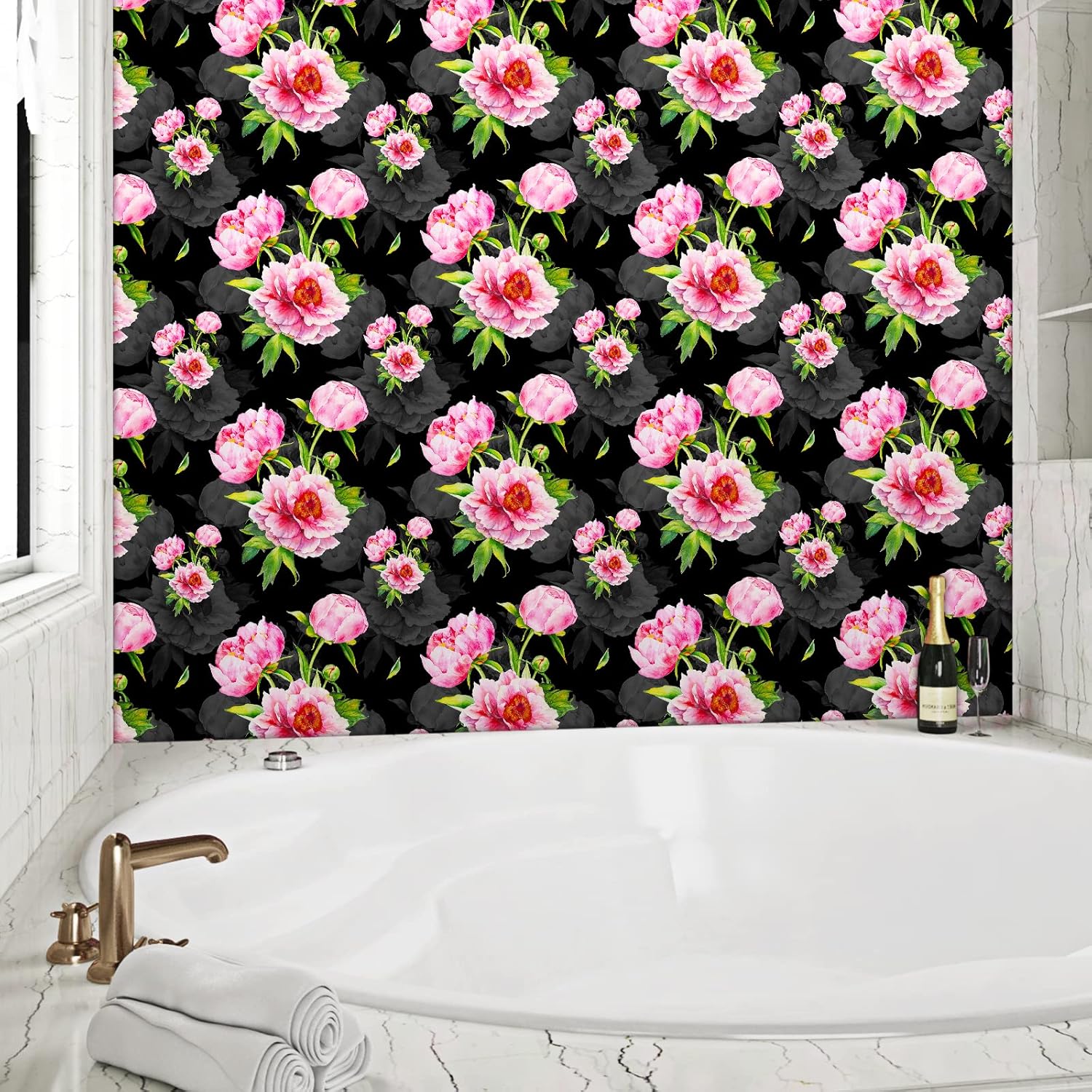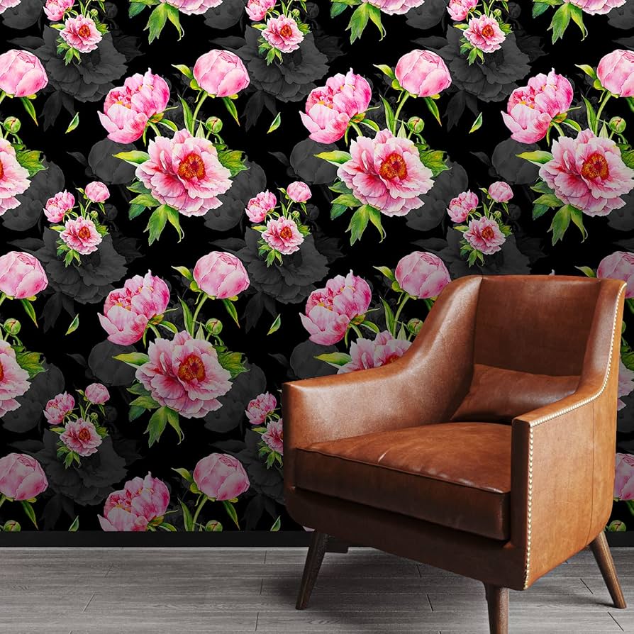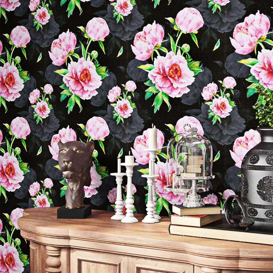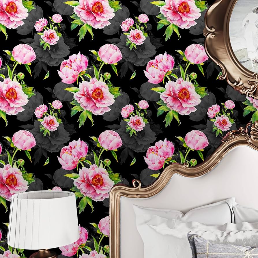 【Dark floral wallpaper】🏈Multi-Purpose: Pink floral wallpaper for bedroom, dark floral wallpaper for bathroom, wall paper for girls bedroom, peony wallpaper stick and peel for nursery, peel and stick wallpaper for laundry room, floral peel and stick wallpaper for girls room, dark floral peel and stick wallpaper for living room.