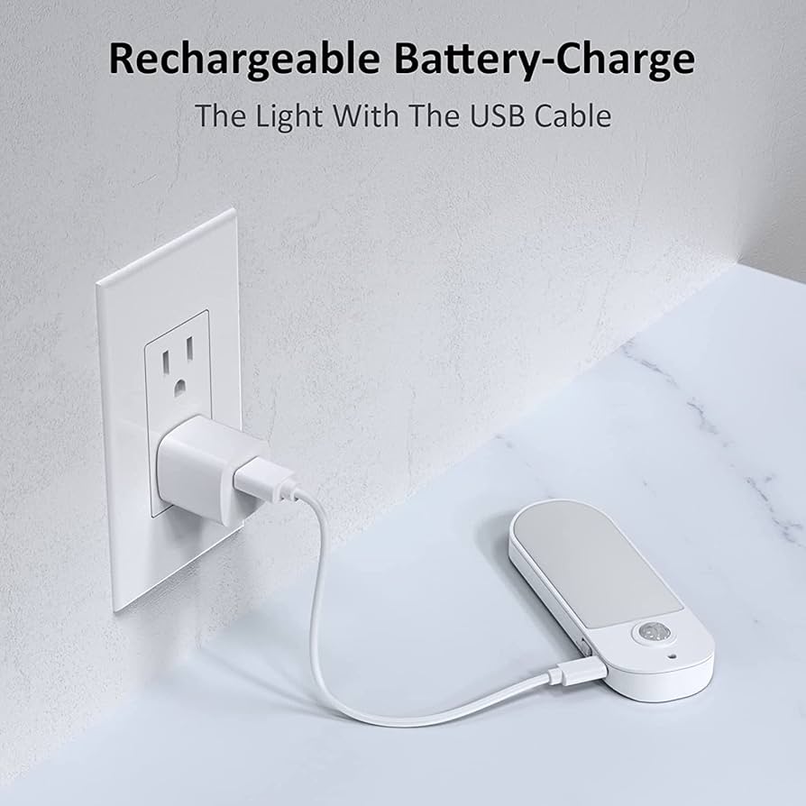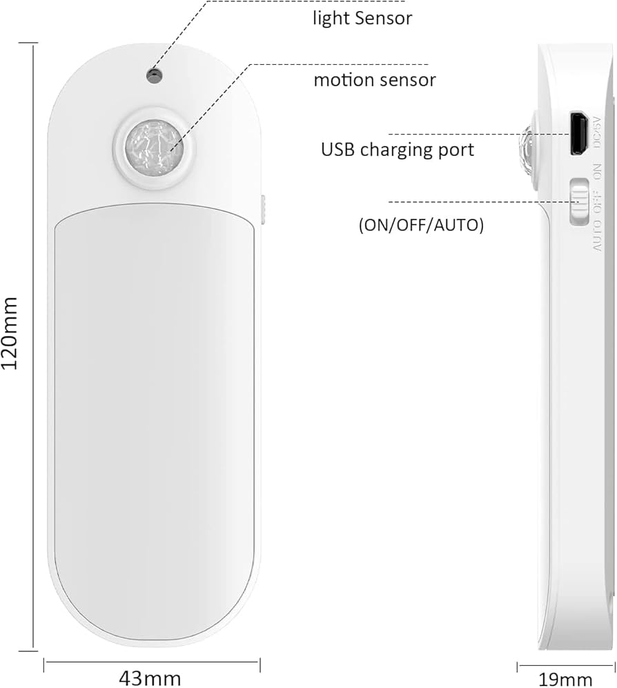 💡【USB Rechargeable Battery Operated】Built-in 300 mAh lithium battery, the motion sensor Light can be fully charged after 2 hours. It can last for 12 hours in always lighting mode and up to two months in automatic mode (depending on the frequency of use). Environmental protection and money saving, no more waste of battery.