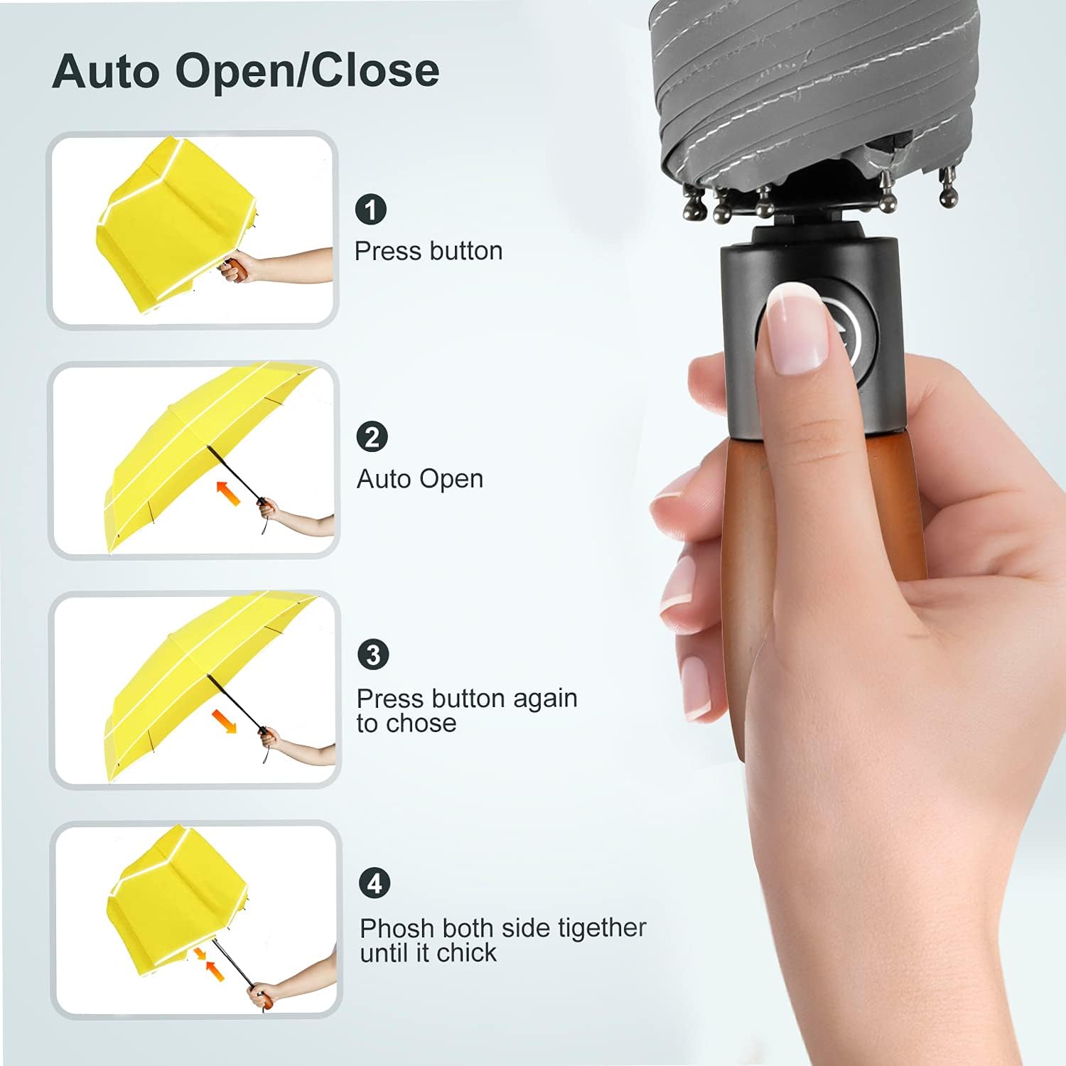 ☂ Automatic opening and closing umbrella: This windproof umbrella adopts a one-button automatic opening and closing design. You can quickly open or close the travel umbrella by pressing a button. One-handed operation allows you to quickly enter a car, building or tent, etc.