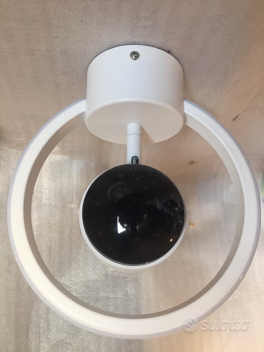 ∙ Design: Modern circular ring light with central rotatable spotlight head