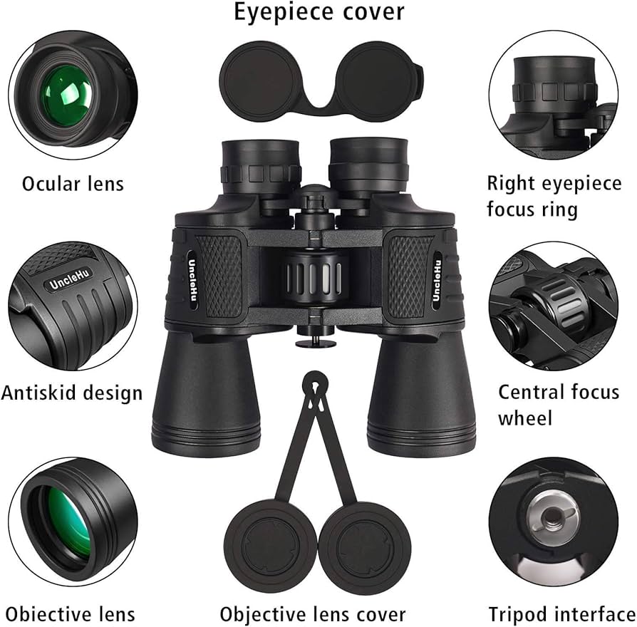 【Easy to Use】First adjust the center focus wheel for your left eye, then use the right eyepiece ring to fine-tune your right eye. Tripod-compatible (tripod not included) — ideal for steady long-time viewing. Great beginner-friendly binoculars.