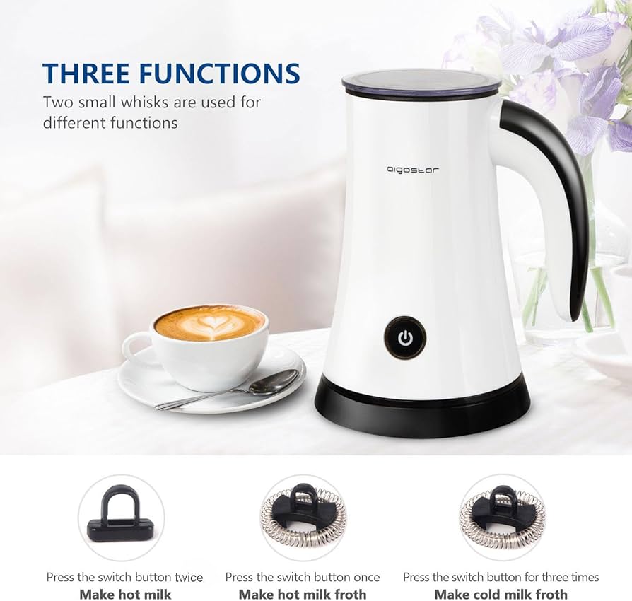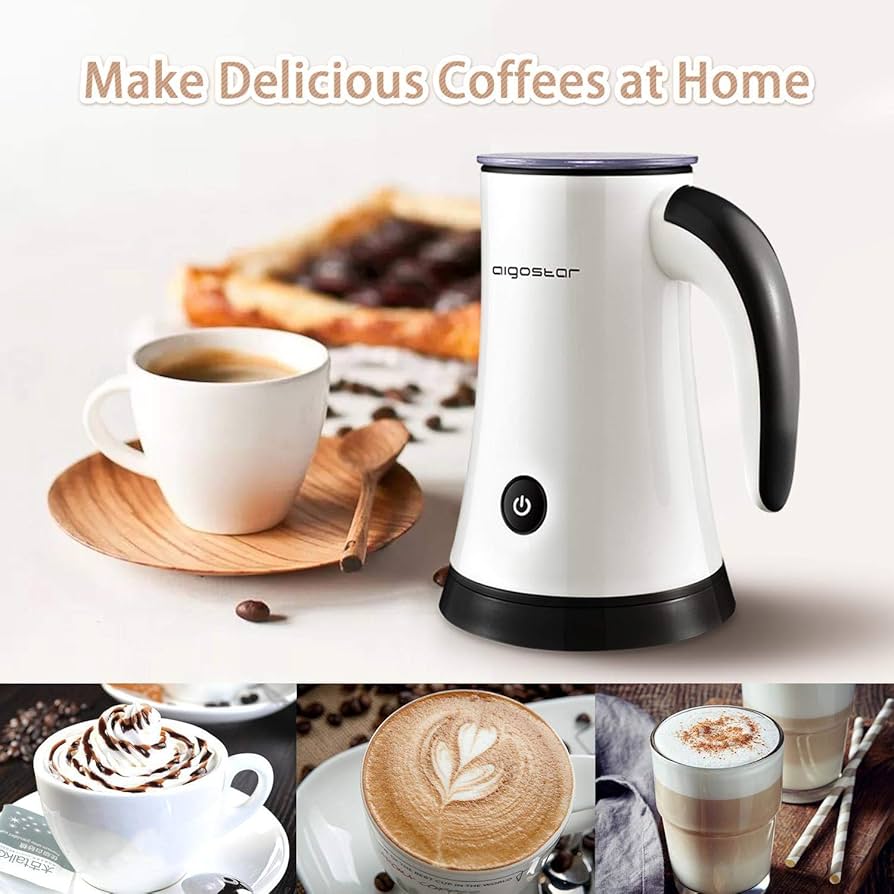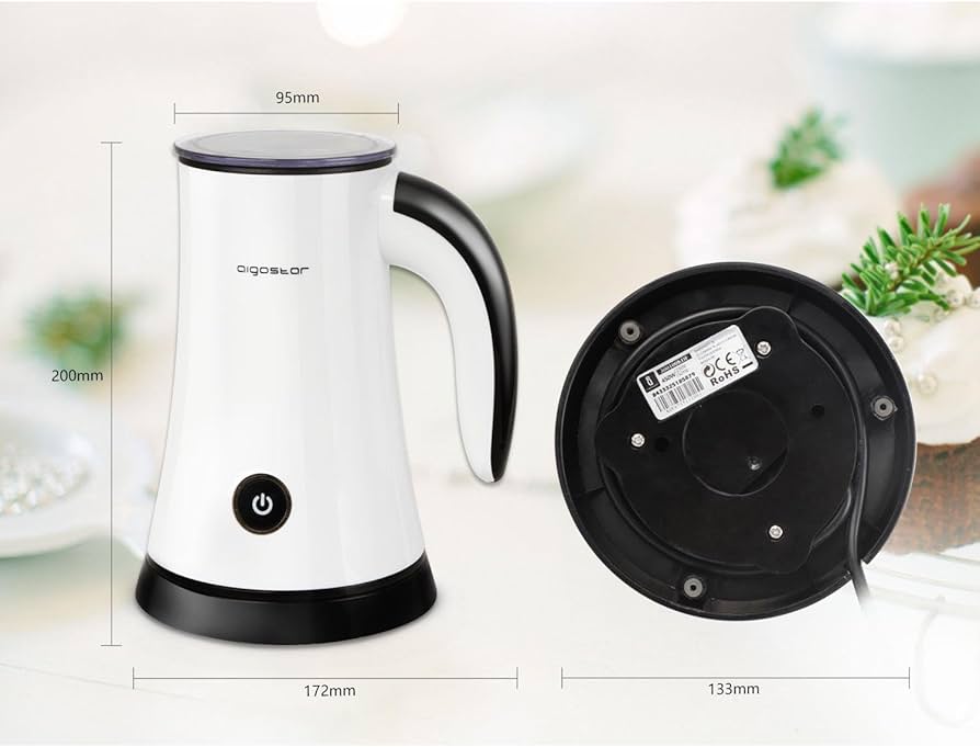 Aigostar Miss Puff 30KDF Automatic Milk Frother 450 Watt Milk Frother for Preparation of Hot and Cold Foam or Hot Milk, 200 ml.