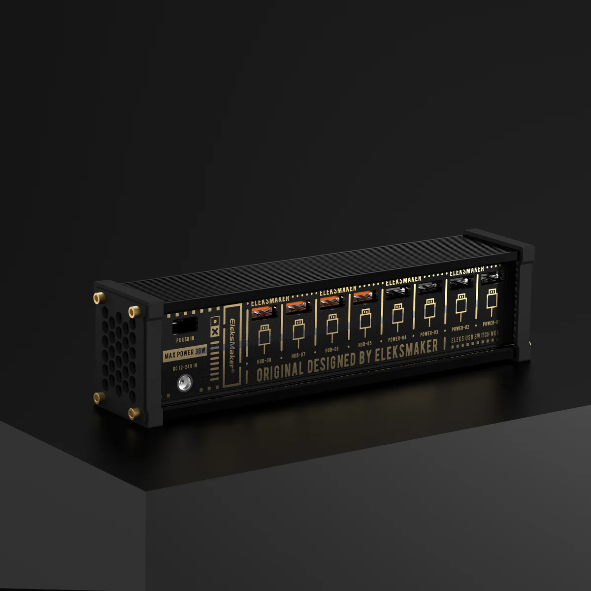 ∙ Aircraft-style toggle switches — individual on/off control per port with LED indicators