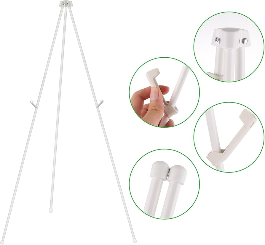 [High Quality] The foldable easel is made of high quality metal steel, sturdy, lightweight, not easy to bend or break and can hold items weighing up to 2.5 kg. The electroplated surface is rust-proof and
