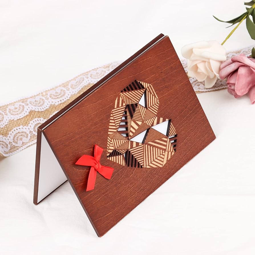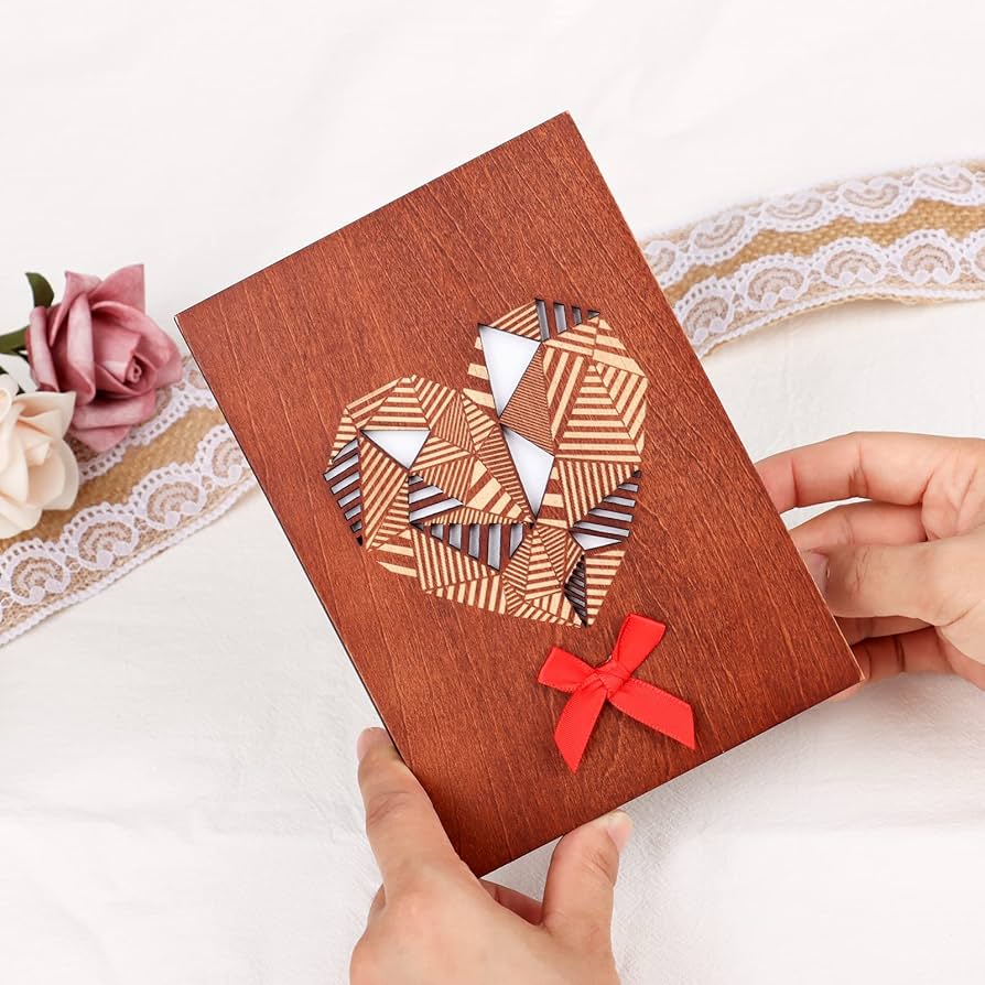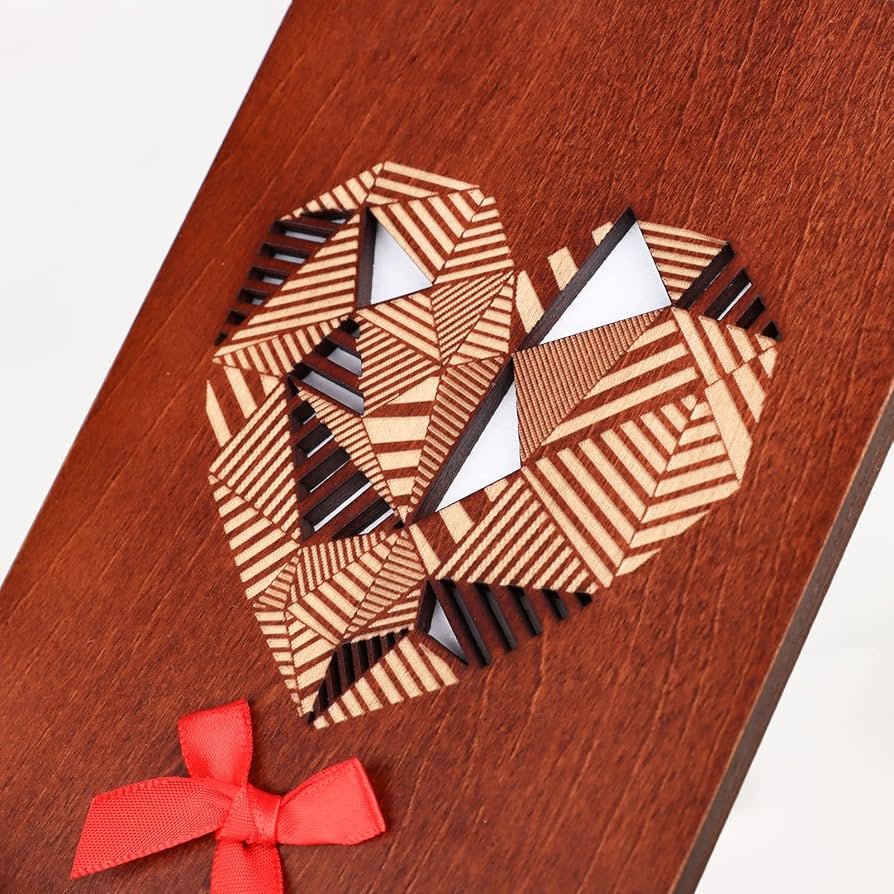 UNIQUE CARD BY POPGIFTU DESIGN – Our Wood Cards is a little piece of art! The cover design of this heart shaped card is a hollow carved geometric patchwork shapes - one large hearts, and a cute handmade bow, handmade natural wood card will stand out from traditional paper cards.