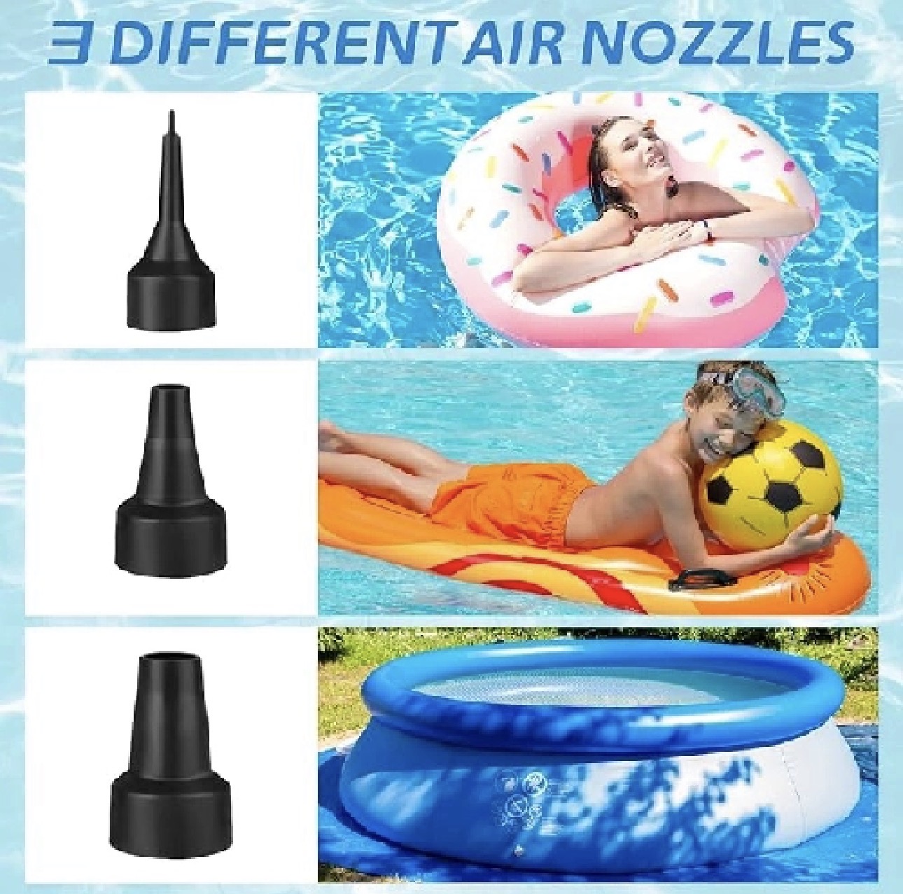 • (3 Detachable Nozzles to Choose) We have 3 nozzles of different size in the electric air pumps, it can fit most inflatables you need to inflate or deflate.