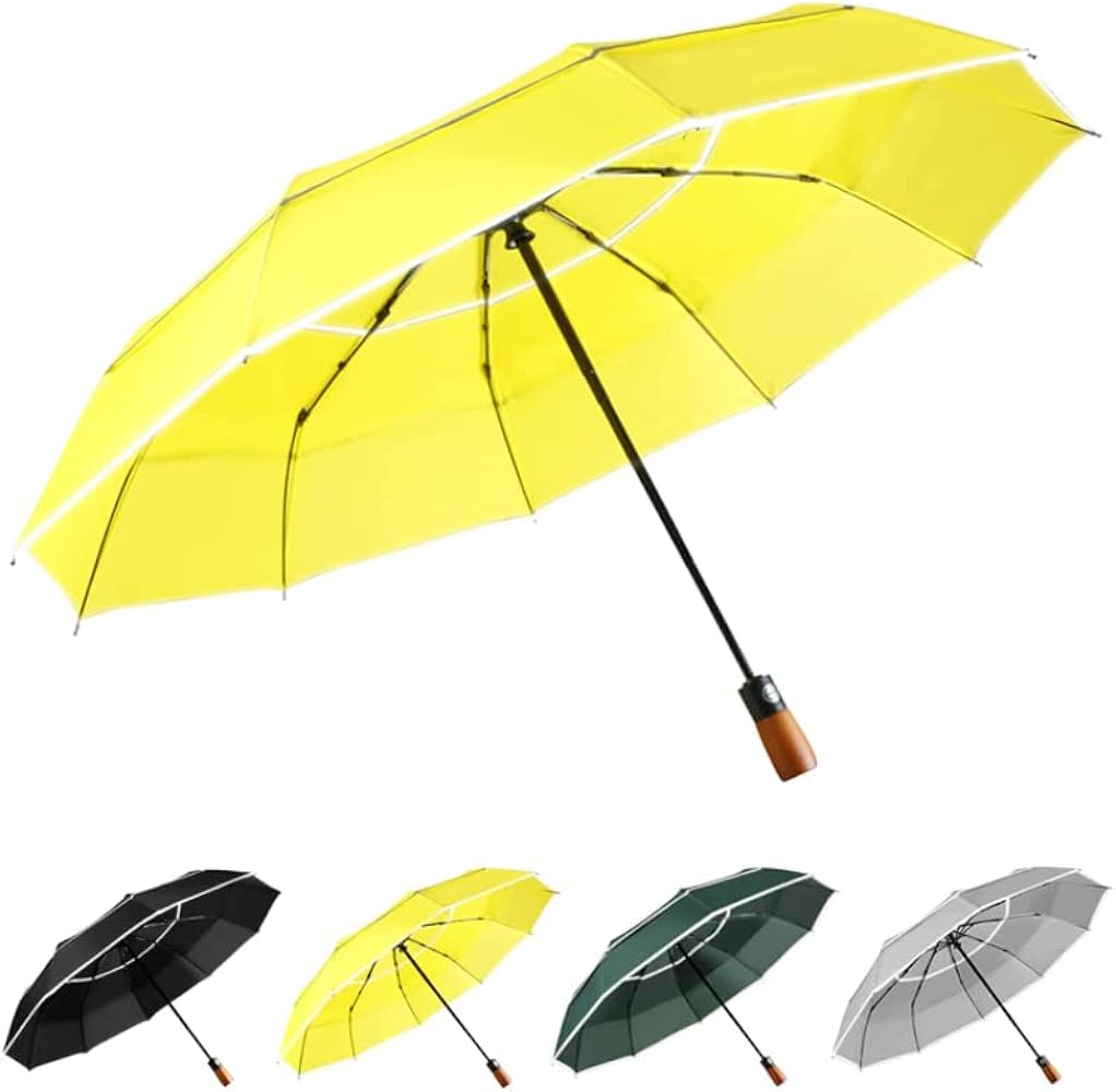 YumSur Compact Travel Umbrella - Windproof, Reinforced Canopy, Tested in 60mph Winds, Strong Reinforced Windproof Umbrella, One Touch Auto Open/Close for Men & Women