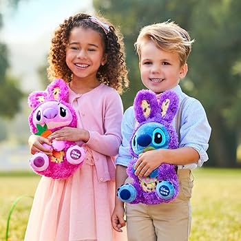 Furry cottontail| Contrast holiday print trims| Flat foam egg with satin exterior| Makes a great Easter Basket gift| Embroidered ''Disney 2024'' patch on foot| Inspired by Disney's em>Lilo & Stitche
