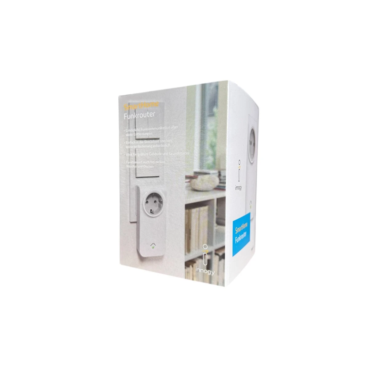 The innogy SmartHome Funkrouter (PSR) is a wireless range repeater designed to extend the radio coverage of your innogy or RWE SmartHome system. If you have a larger home, thick walls, multiple floors, or devices that are too far from your SmartHome Central unit, this Funkrouter bridges the gap by amplifying the 868.3 MHz signal that your smart home devices communicate on. Simply plug it into any wall socket between your central unit and the problem area — no configuration or setup required.